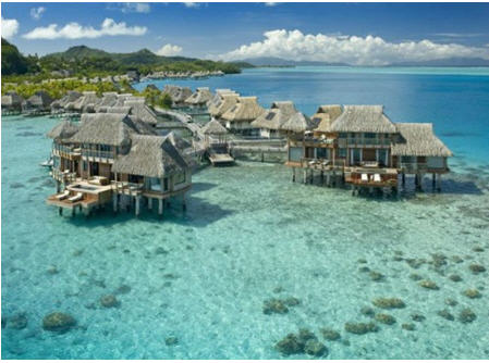 Khách sạn nằm cách đảo chính Bora Bora khoảng một dặm với 44 khu nhà một tầng nối tiếp nhau. Ấn tượng mạnh mẽ nhất về nơi đây là bờ biển với bãi cát trắng trải dài và những nhà vườn xanh mướt, cạnh ngọn núi Mount Otemanu cao 2.385 feet.