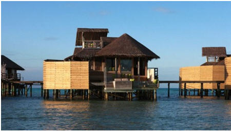 Kiến trúc khách sạn gợi cho du khách nghĩ đến ngôi làng Bajau truyền thống của Malaysia với mái lá cọ và hành lang bằng gỗ mộc. Đây cũng là địa điểm lặn biển đẹp nhất thế giới.