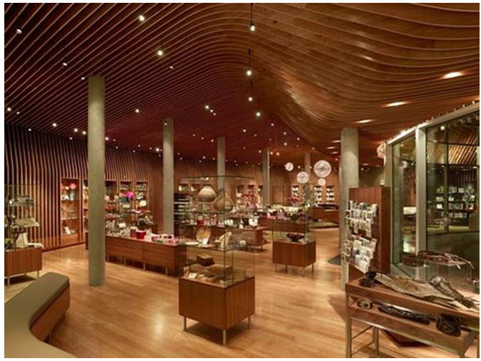 Trần nhà của bảo tầng nghệ thuật Mỹ mới được lấy ý tưởng từ một một thợ làm giỏ ở Arkansas. Người này đã sử dụng gỗ sồi non điêu khắc trong các thiết kế của mình. (Marlon Blackwell Architects).