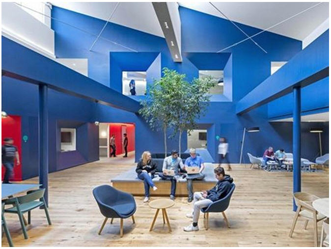 Trụ sở của Beats By Dre tại thành phố Culver, California có thiết kế đặc biệt ấm cúng, hấp dẫn và tạo môi trường tương tác giữa 650 nhân viên của các phòng ban khác nhau. Để làm được điều đó, tòa nhà được thiết kế đặc biệt với cửa sổ trên trần, không gian sáng sủa, thoáng mát, nội thất gỗ ấm cúng cùng những bức tường sơn xanh đỏ. (Bestor Architecture).