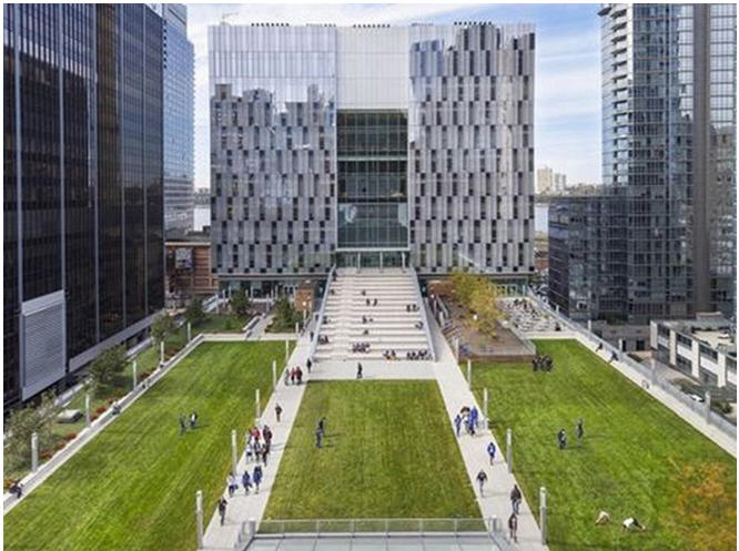 Mọi hạng mục trong khuôn viên Học viện hình sự John Jay được cải tạo, trở thành một khối thống nhất. Một dãy bậc thang dài 152 m được xây dựng nối với khu giảng đường cũ với tòa tháp 14 tầng mới, tạo thành một khuôn viên thống nhất. (Skidmore, Owings & Merrill LLP).