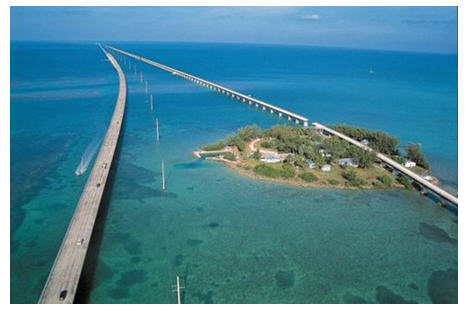 US Highway 1 (Florida): US 1 bắc qua rất nhiều hòn đảo và 42 cây cầu ở vùng Florida Keys từ Key Largo tới Key West. Con đường này được xây dựng từ năm 1938 và gần như nằm toàn phần trên mặt nước. Đứng ở trên cầu du khách có thể nhìn thấy cảnh mặt trời mọc và mặt trời lặn tuyệt đẹp.