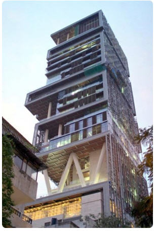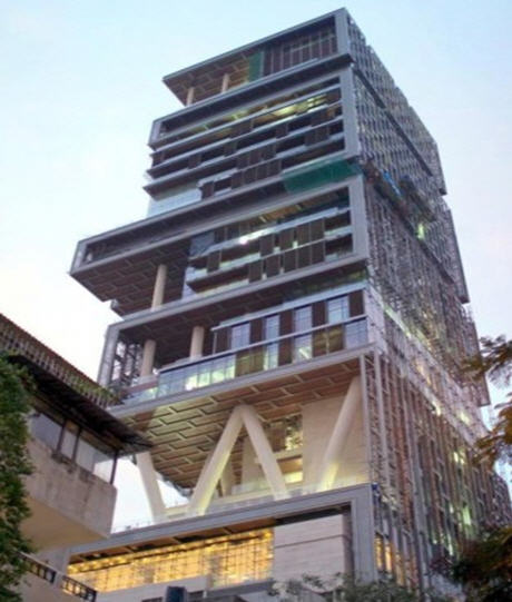 Tòa nhà Antilia là ngôi nhà đắt nhất thế giới, nằm ở đường Altamount, Off Pedder Road, phía Nam của Mumbai. Đây là nơi ở của ngài Mukesh Ambani, chủ tịch của Công ty TNHH Reliance Industries và là người giàu thứ năm trên thế giới. Antilia được xây dựng trên diện tích 400.000 feet từ năm 2002 và được hoàn thành vào năm 2010. Ngôi nhà có 27 tầng với tất cả các cơ sở vật chất như hồ bơi, spa & phòng tập thể dục, sân vườn ngoài trời, rạp chiếu phim, sáu tầng đậu xe và ba sân đỗ trực thăng.