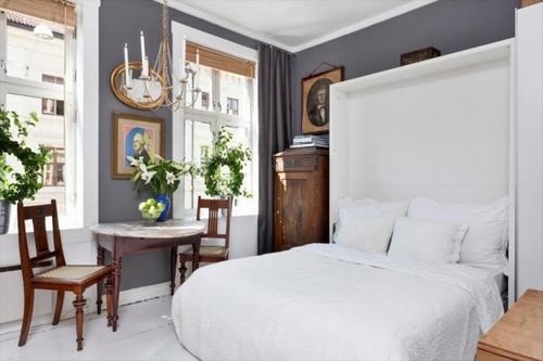 Phòng khách kết hợp với phòng ngủ là giải pháp thông minh trong căn hộ này