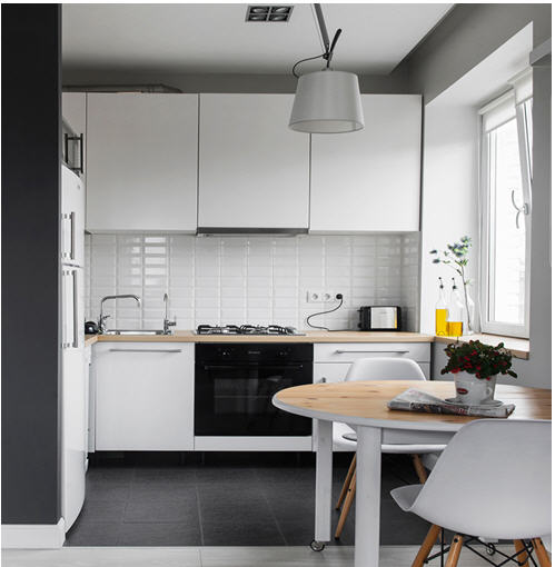 Bếp và không gian ăn vừa đủ cho gia đình 4 người sinh hoạt.