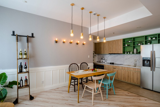 The owner is someone who likes to communicate, or treat friends, so the house has a spacious kitchen. The large furniture is arranged neatly to have plenty of ventilation to help ease the floor.