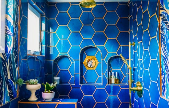 Navy blue makes us feel like relaxing in the pool or on the beach. Of course, when navigating the navy blue, you should also incorporate marine-related decorations to create the most complete space.