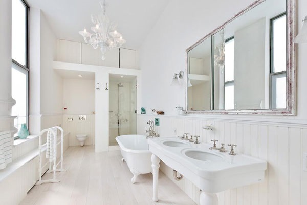 White is always the favorite color for the bathroom, especially the room is small because of the effect of space expansion that this color. When combined with large mirrors, the room is as wide as a lot.