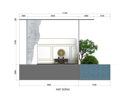 In addition, the villa owner has a great passion for books and wants an up-market space to enjoy the feeling of the books. Understanding that, the architect skillfully incorporated a small corner next to the living room which was a private reading area that had a spacious view of the pool and yard of the lodge - the landscape element. The room has turned up the level of the house.