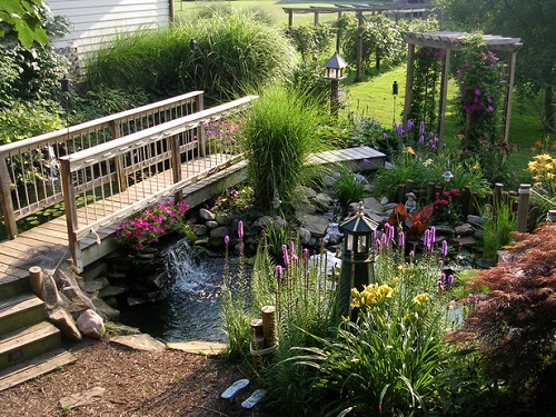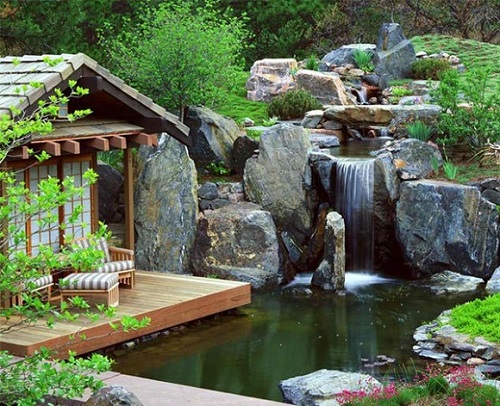 An idea is not bad at all that is created in the garden waterfall . Actually creating a waterfall in the garden is not too difficult , you just transform it from rocks and as a place to contemplate , relax for a family perfectly . The presence of waterfalls contribute to improving the aesthetic value of the garden and become the highlight for outdoor space