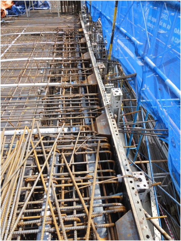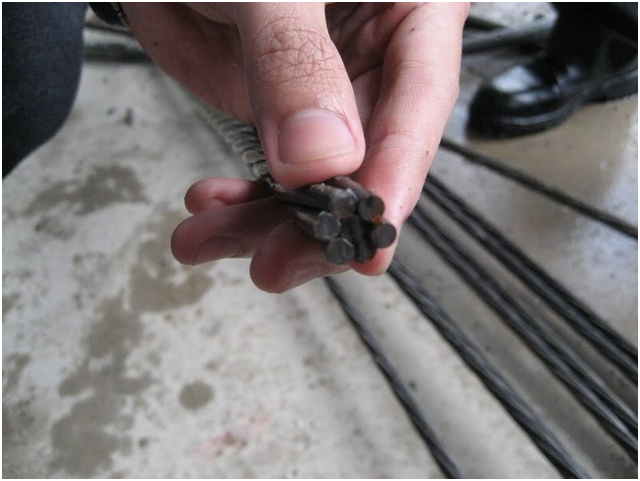 Also the arrangement of reinforced concrete as in conventional flooring , floor layout tensioning is also adding tendon ( white ), usually in a cable bundle about 5 cables , the cables are fully integrated in foreign countries , each fiber is braided from 7 strands ( what we say here is that I see in the work , while the other works can not fully contest every detail such like ) . Check out the picture below will clarify the structure of a cable :
